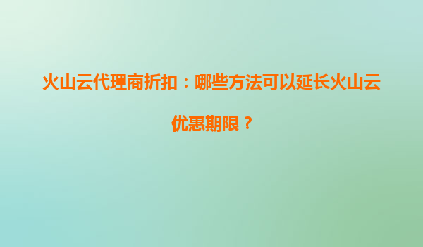 2025-07-02如何延长火山云代理商折扣?5种方法助您最大化优惠期限 一、了解火山云代理商的独特优势 作为云计算服务领域的创新者,火山云通过代理商体系为用户提供了三大核心价值:...