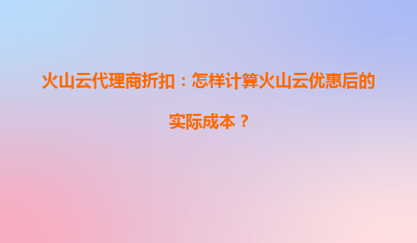 2025-07-02火山云代理商折扣:如何计算优惠后的实际成本? 一、火山云的核心优势 火山云是字节跳动旗下的云计算服务品牌,凭借强大的技术架构和全球资源布局,为企业提供高性价比的云服务解决方案,其核心优势包括: ...