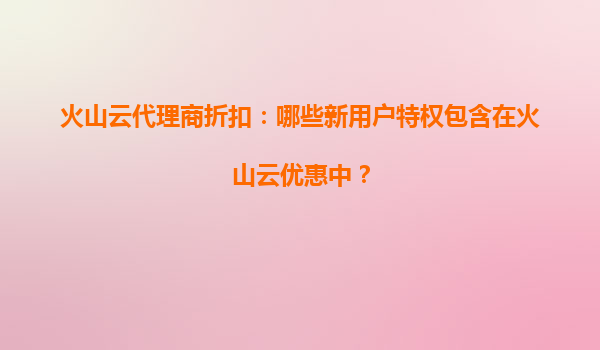 2025-07-02火山云代理商折扣:新用户特权与核心优势解析 一、火山云新用户专属优惠特权 火山云为首次注册的用户提供了一系列极具吸引力的优惠特权,通过代理商渠道还可叠加额外折扣。主要包含以下核心权益: ...