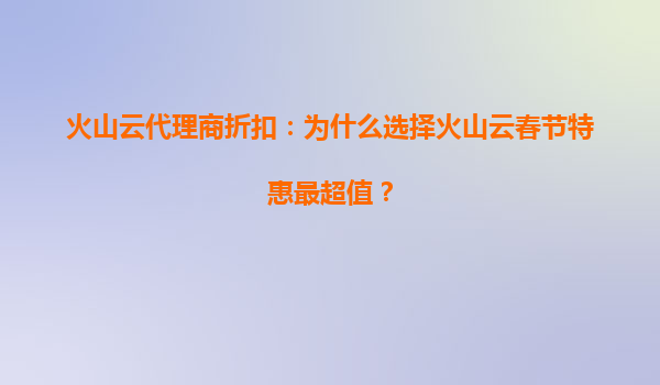 2025-07-02火山云代理商折扣:为什么选择火山云春节特惠最超值? 引言 随着春节的临近,各大云服务商纷纷推出节日特惠活动。作为国内领先的云计算服务提供商,火山云(VolcanoEngine)也推出...