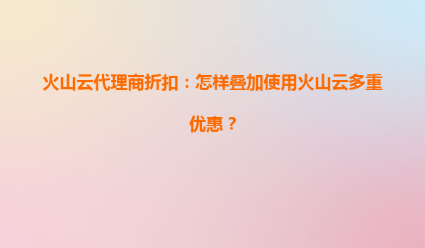 2025-07-02火山云代理商折扣:如何巧妙叠加多重优惠? 一、火山云与代理商的协同优势 火山云作为领先的云计算服务提供商,以其高性能、高可靠性和灵活的计费模式吸引了大量企业用户。而火山云...
