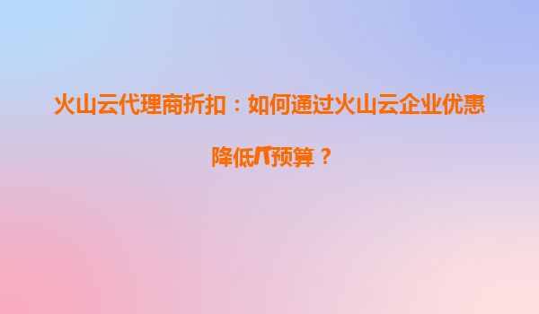 火山云代理商折扣:哪些行业专属优惠火山云正在提供? 引言 随着数字化转型进入深水区,越来越多的企业开始将业务迁移至云端,以提升效率、降低成本并增强业务灵活性。火山云作为字节跳动旗下的云...