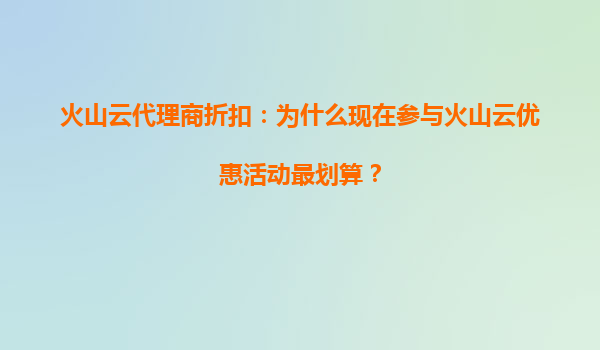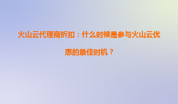 2025-07-01火山云代理商折扣:参与优惠的最佳时机 火山云作为国内领先的云计算服务提供商,凭借其高性能、稳定性和灵活的解决方案,吸引了众多企业和开发者。通过代理商渠道购买火山云服务,往往能享受额外折扣和增值服务。那...