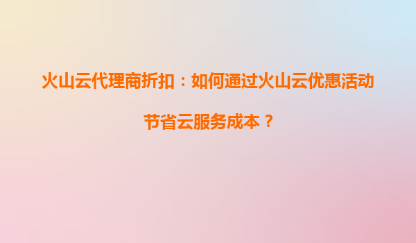 2025-07-01火山云代理商折扣:如何注册才能享受火山云首购优惠? 随着云计算市场的快速发展,越来越多的企业开始选择将业务迁移到云端。作为国内领先的云计算服务提供商之一,火山云凭借其强大的技术实力和优质的服务赢...