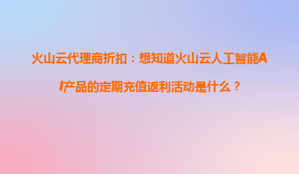 火山云AI产品代理商折扣:定期充值返利活动详解 一、火山云AI的核心优势 作为国内领先的云计算与人工智能服务提供商,火山云凭借以下优势成为企业数字化转型的首选伙伴: 技术领先性:基于字节跳动...