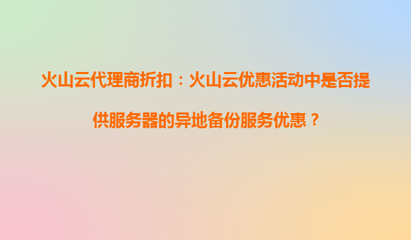 2025-10-21火山云代理商折扣:火山云优惠活动中是否提供服务器的异地备份服务优惠? 火山云的异地备份服务优惠解析 在云计算服务竞争激烈的今天,数据安全与备份成为企业选择云服务商的重要考量因素之一...