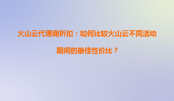 2025-10-21火山云代理商折扣:如何比较火山云不同活动期间的最佳性价比? 1.火山云与火山云代理商的核心优势 在选择云计算服务时,火山云及其代理商提供的多重优势是用户决策的关键因素。以下是两者的核心优势...