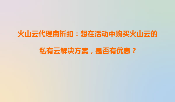 火山云代理商折扣活动:私有云解决方案优惠指南 一、火山云私有云解决方案的优势 火山云作为国内领先的云计算服务提供商,其私有云解决方案凭借以下核心优势成为企业数字化转型的首选: 高性能架构:...