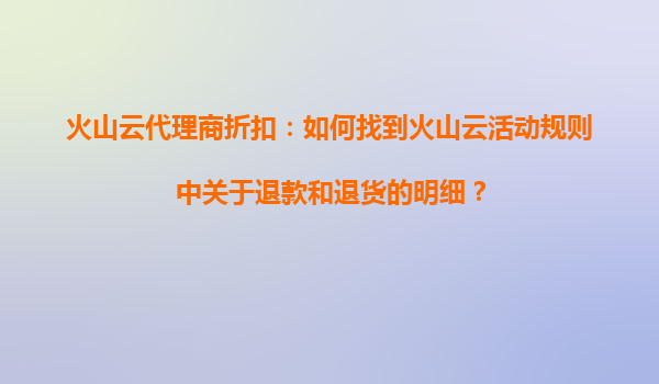 2025-10-21火山云代理商折扣:如何查询退款退货规则与平台优势解析 一、火山云活动规则中退款退货明细查询方法 在使用火山云服务时,了解退款和退货政策是保障权益的关键。以下是具体查询步骤: 登...