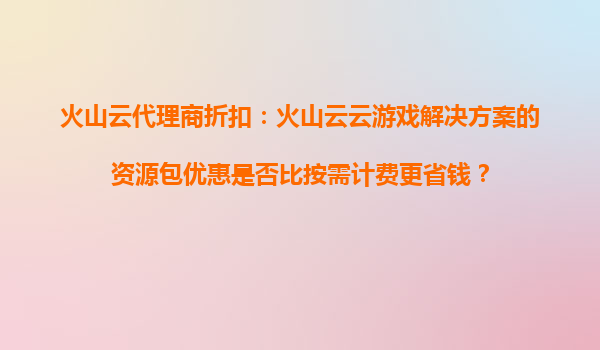 2025-10-21火山云代理商折扣:火山云云游戏解决方案的资源包优惠是否比按需计费更省钱? 引言 随着云计算技术的快速发展,云游戏作为一种新兴的游戏形式,逐渐成为行业的热点。火山云作为国内领先...