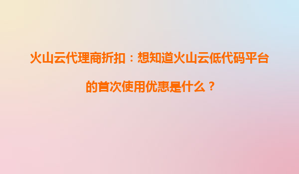2025-10-21火山云低代码平台首次使用优惠及代理商优势解析 一、火山云低代码平台核心价值 火山云低代码平台是字节跳动旗下的企业级数字化解决方案,通过可视化拖拽和模块化组件,帮助客户快速搭建ERP、CRM、OA等系...