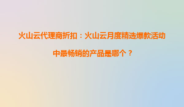 2025-10-21火山云月度精选爆款活动:最畅销产品解析 一、火山云及代理商的核心优势 火山云作为字节跳动旗下的云计算服务品牌,依托强大的技术生态和全球化资源,为企业提供高性能、高稳定的云服务解决方案。...