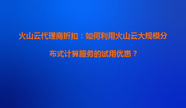 2025-10-20火山云代理商折扣:如何利用火山云大规模分布式计算服务的试用优惠? 1.火山云的优势概述 火山云作为一款领先的云计算服务提供商,其大规模分布式计算服务在业界享有盛誉。其主要优势包括: ...