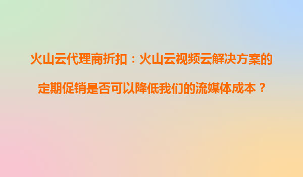 2025-10-20火山云代理商折扣:火山云视频云解决方案的促销如何降低流媒体成本? 一、引言:流媒体时代的高成本挑战 随着短视频、直播、在线教育等行业的爆发式增长,企业对流媒体服务的需求激增。然而,视频...