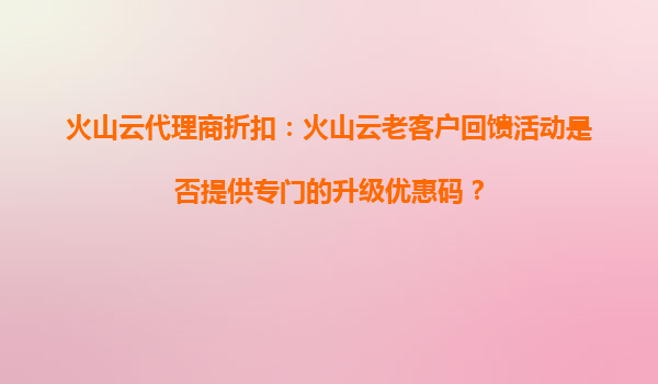 2025-10-20火山云代理商折扣:邀请新用户享多重激励 作为火山云代理商,邀请新用户注册使用不仅能享受官方提供的阶梯式折扣政策,还能参与高额返佣活动。例如,当成功邀请企业级客户完成首单后,代理商可获得最高15%的现金返利...