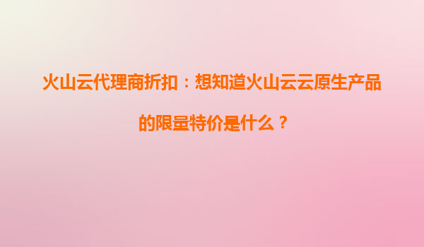 火山云代理商折扣:揭秘云原生产品限量特价与核心优势 一、火山云限量特价活动概览 火山云近期针对代理商推出的云原生产品限量特价活动,旨在为企业用户提供高...