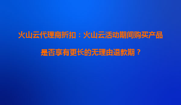2025-10-19火山云代理商折扣:活动期间购买享有无理由退款期延长服务解析 一、火山云代理商活动期间的无理由退款政策 在火山云官方活动期间(如双11、周年庆等),通过代理商渠道购买云产品的用户可享受特殊权益。值...