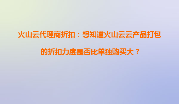 火山云代理商折扣:打包购买VS单独购买的优惠力度深度解析 一、火山云代理商折扣机制概述 火山云作为字节跳动旗下的云计算服务品牌,通过代理商体系为中小企业提供灵活的产品购买方案。其折扣策略主要分为两...