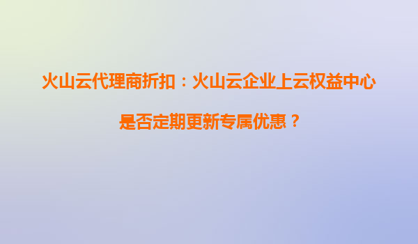 2025-10-19火山云代理商折扣政策解析:企业上云权益中心专属优惠更新机制 一、火山云核心优势助力企业数字化转型 作为字节跳动旗下云计算服务品牌,火山云凭借三大核心优势为企业提供高效上云解决方案: ...