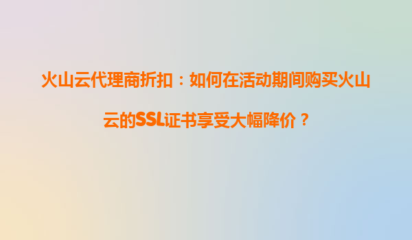 2025-10-19火山云代理商折扣:活动期间购买SSL证书享大幅降价攻略 一、火山云SSL证书的核心优势 火山云作为国内领先的云计算服务商,其SSL证书服务以高安全性、高兼容性和...