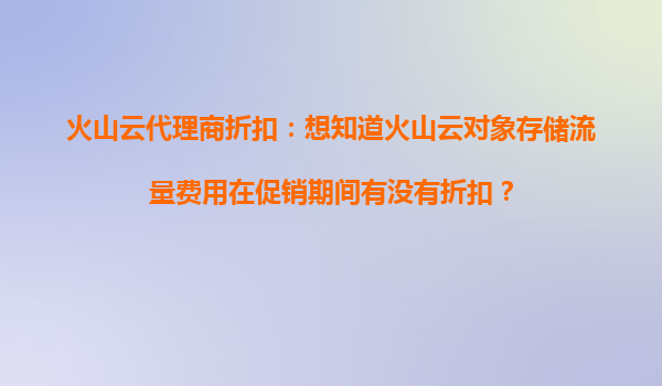 2025-10-19火山云代理商折扣解析:促销期间对象存储流量费用优惠详解 一、火山云对象存储的吸引力 火山云对象存储(TOS)作为火山引擎推出的核心云服务之一,凭借高可用、高扩展性和低成本的特...