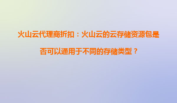 2025-10-19火山云代理商折扣:火山云的云存储资源包是否可以通用于不同的存储类型?火山云作为字节跳动旗下重要的云计算服务提供商,依托于母公司强大的技术背景和生态优势,提供了稳定高效、安全可靠的云存储服务。对于客户和...