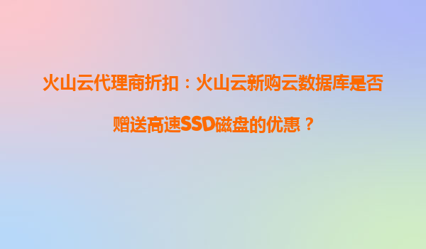 2025-10-18火山云代理商折扣:火山云新购云数据库是否赠送高速SSD磁盘的优惠? 火山云代理商折扣的核心优势 火山云作为国内领先的云计算服务提供商,一直致力于为企业用户提供高性能、高可靠性...