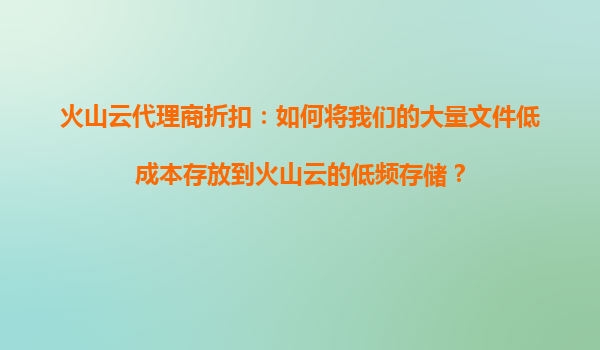 2025-10-19火山云代理商折扣:如何低成本存储大量文件到火山云低频存储 在数字化时代,数据存储需求呈爆炸式增长,企业如何高效、低成本地存储海量文件成为关键问题。火山云的低频存储服务凭借其卓越的性能和极具竞争力的价格...