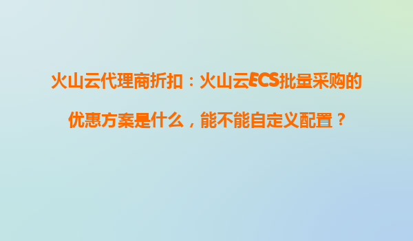 2025-10-17火山云代理商折扣:火山云ECS批量采购的优惠方案与自定义配置解析 一、火山云ECS批量采购的优惠方案 火山云作为国内领先的云计算服务商,为企业用户提供了灵活的ECS(弹性计算服务)批量采购优惠...