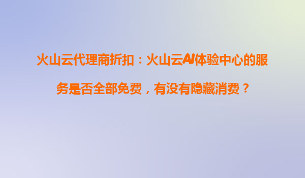 2025-10-18火山云代理商折扣:火山云AI体验中心的服务是否全部免费,有没有隐藏消费? 火山云AI体验中心的服务模式 火山云是字节跳动旗下的云计算服务品牌,提供包括存储、计算、AI等在内的多种云服务。其AI...
