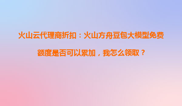 2025-10-18火山云代理商折扣:火山方舟豆包大模型免费额度详解 一、火山云的核心优势 火山云作为字节跳动旗下的云计算服务平台,凭借以下优势备受开发者青睐: 高性能计算资源:依托全球数据中心布局,...