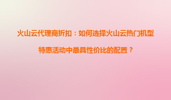 2025-10-17火山云代理商折扣:如何选择最具性价比的配置? 在云计算市场竞争日益激烈的今天,火山云凭借其高性能、稳定可靠的服务和极具竞争力的价格赢得了众多企业的青睐。特别是通过火山云代理商折扣,用户可以享受到更优...