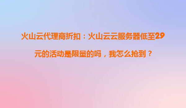 2025-10-17火山云代理商限时折扣:29元云服务器抢购攻略与火山云优势解析 一、火山云促销活动是否限量? 火山云代理商推出的29元云服务器限时折扣通常属于限量促销活动,...