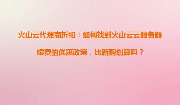 火山云代理商折扣:如何找到云服务器续费优惠政策? 一、火山云的优势解析 火山云作为字节跳动旗下的云计算品牌,凭借强大的技术底座和全球化资源布局,为用户提供高性能、高可靠的云服务。其服务器采用自...