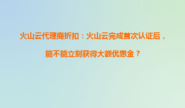 2025-10-17火山云代理商折扣政策解读 成为火山云认证代理商后,用户可以享受平台提供的多项优惠政策。关于首次认证后是否立即获得大额优惠金,需要明确的是,代理商权益通常采用阶梯式释放机制。完成基础资质认证后,用户可获...