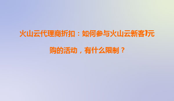 2025-10-17火山云代理商折扣:如何参与火山云新客1元购的活动,有什么限制? 一、火山云新客1元购活动简介 火山云作为字节跳动旗下的云计算服务品牌,近年来凭借高性价比和稳定的服务吸引了大量用户。为吸引...