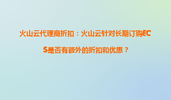 2025-10-17火山云长期订购ECS:更多折扣与优惠助力企业降本增效 火山云ECS长期订购的阶梯式折扣政策 作为国内领先的云计算服务商,火山云针对企业长期使用ECS的需求,推出了阶梯式折扣优惠。用户可根据业务...
