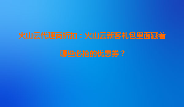 2025-10-16火山云代理商折扣:火山云新客礼包里面藏着哪些必抢的优惠券? 在云计算市场竞争日益激烈的今天,企业和个人开发者都在寻找性价比高、服务稳定的云服务商。火山云凭借其强大的技术实力和灵活的代理商...