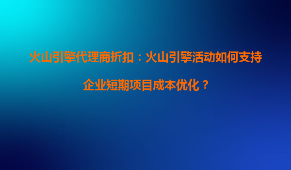 2025-10-16火山引擎代理商折扣:火山云如何助力企业短期项目成本优化? 一、企业短期项目的成本挑战 在企业运营中,短期项目(如促销活动、临时研发测试、季节性业务扩展等)往往面临较高的资...