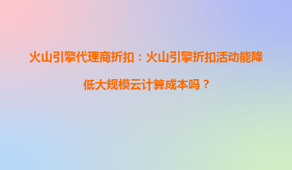 2025-10-14火山引擎代理商折扣:火山引擎折扣活动能降低大规模云计算成本吗? 一、火山引擎的核心优势解析 火山引擎作为字节跳动旗下的云计算服务品牌,凭借其技术积累与全球化基础设施布局,在计算、存储、网络等核...