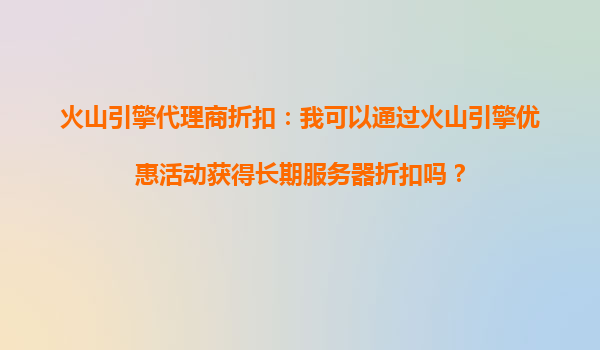 2025-10-14火山引擎代理商折扣:长期服务器优惠活动解析 火山引擎强大的云计算基础设施 作为字节跳动旗下的云计算服务品牌,火山引擎依托全球领先的数据中心网络和强大的技术积累,为用户提供稳定、高效、安...