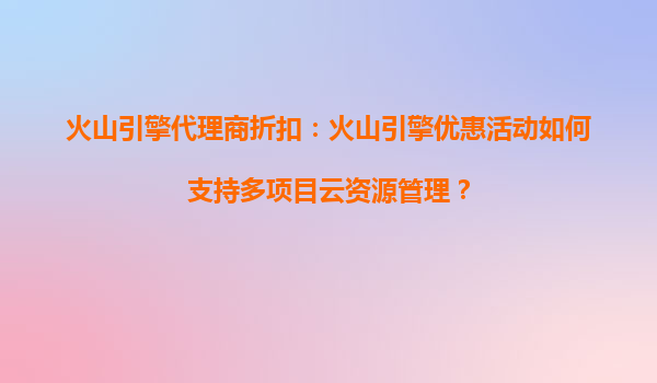 2025-10-14火山引擎代理商折扣:火山引擎优惠活动如何支持多项目云资源管理? 一、引言:云资源管理的挑战与火山引擎的解决方案 在数字化快速发展的今天,企业往往需要同...