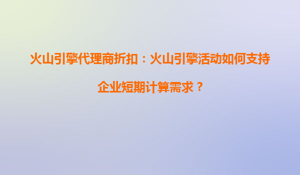 2025-10-14火山引擎代理商折扣:火山引擎活动如何帮助我优化存储和计算支出? 一、火山引擎的核心优势与代理商折扣价值 火山引擎作为字节跳动旗下的云服务平台,凭借其弹性资源调度、高性能计算能力和全球化基础设施...