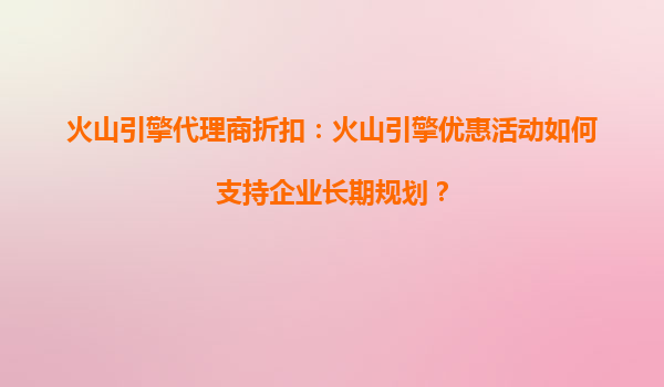 2025-10-13火山引擎代理商折扣:火山引擎优惠活动如何支持企业长期规划? 引言 在数字化转型的浪潮中,云计算已成为企业提升效率、降低成本的核心工具。然而,如何选择适...