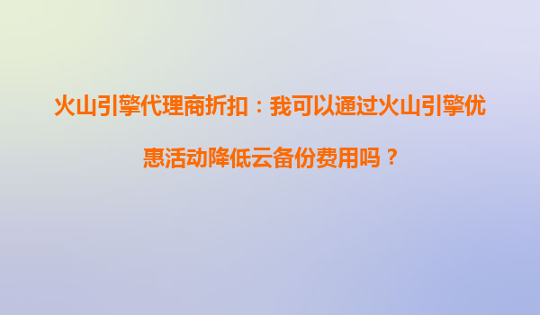 2025-10-13火山引擎代理商折扣:如何通过优惠活动降低云备份费用? 引言 在数字化转型的浪潮中,企业数据的安全存储与高效管理成为刚需。云备份服务因其可靠性、可扩展性和成本效益,成为许多企业的首选方案...