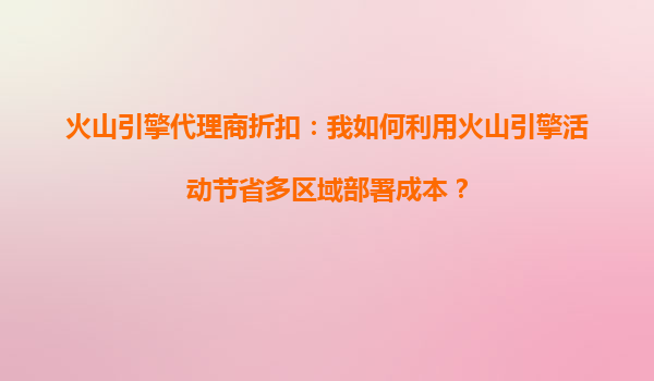 2025-10-13火山引擎代理商折扣:火山引擎折扣活动能提升我的云端资源利用率吗? 一、火山引擎代理商折扣的核心价值 火山引擎作为字节跳动旗下的云计算服务平台,通过代理商提供的折扣活动,为企业用户带来显...