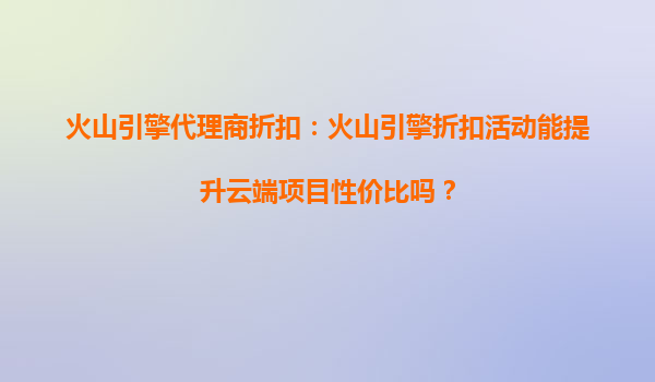 2025-10-11火山引擎代理商折扣:火山引擎折扣活动能提升云端项目性价比吗? 引言:云端服务的性价比之争 在数字化转型的浪潮中,企业上云已成为降本增效的关键选择。然而...