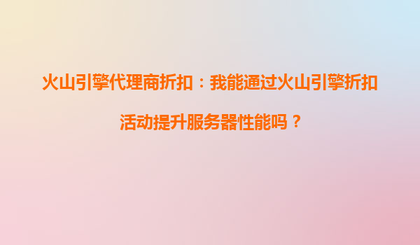 2025-10-11火山引擎代理商折扣:如何通过优惠活动提升服务器性能 火山引擎代理商折扣的价值 在云计算市场竞争激烈的今天,企业用户对服务器性能和成本控制的平衡需求日益增长。火山引擎作为字节跳动旗下的云计算服务...