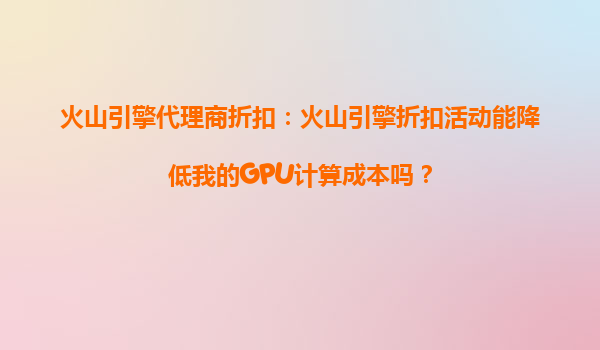 2025-10-11火山引擎代理商折扣:火山引擎折扣活动能降低我的GPU计算成本吗? 引言 在当今数字化时代,GPU计算已成为人工智能、大数据分析和高性能计算等领域不可或缺的一...