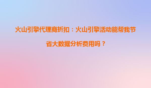 2025-10-10火山引擎代理商折扣:火山引擎活动能帮我节省大数据分析费用吗? 在数字化转型的浪潮中,大数据分析已成为企业提升竞争力的核心工具。然而,高昂的计算资源成本往往让中小企业望而却步。火山引擎作为字节跳动旗...
